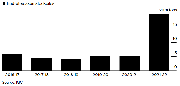 По оценкам Международного совета по зерну, запасы зерна на Украине перед следующим урожаем превысят норму в четыре раза.