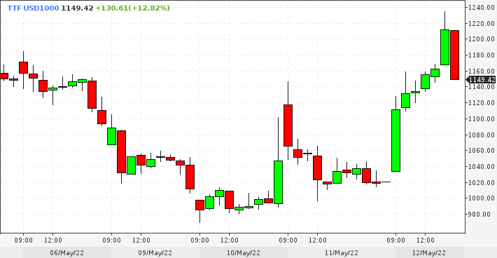 Цены на голландский газ на европейском хабе TTF выросли примерно на 20% в четверг утром.