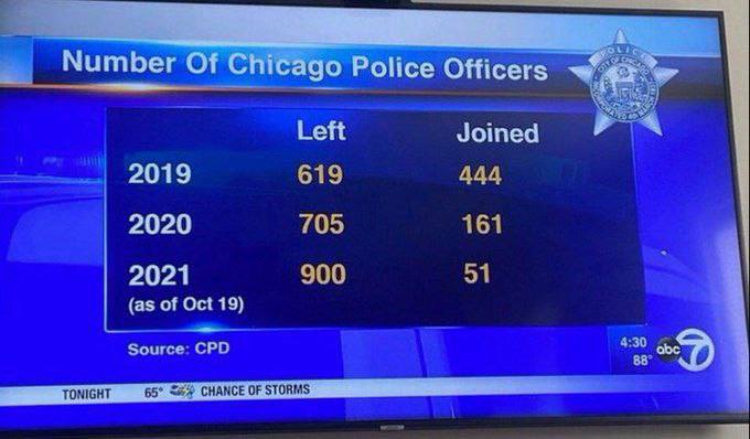 Текучка кадров в полиции Чикаго в 2019-2021 гг.: левая колонка - уволившиеся сотрудники, правая - вновь пришедшие.