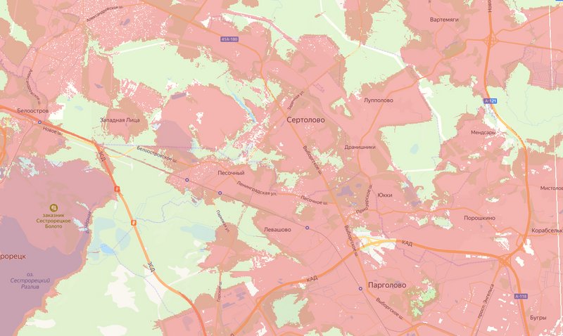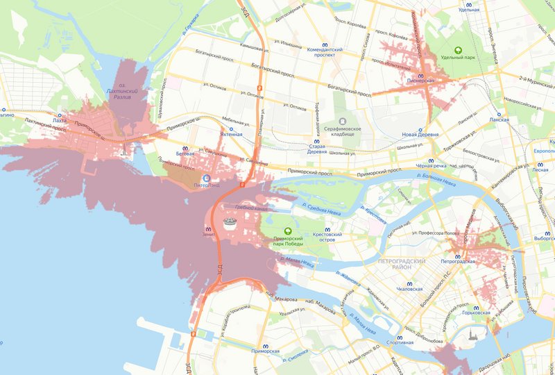 Вообще то карта покрытия выглядит вообще подругому. Вот, например, покрытие 5G на севере СПб