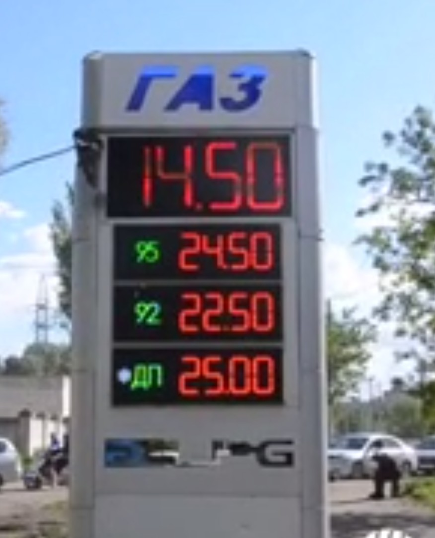 Вот на сегодня табло заправки в гривнах в Харькове. Установленный курс в ДНР и ЛНР 1 гривна=2 рубля.