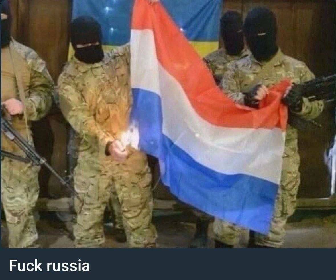 Назло России хохляцкие укурки сжигают флаг голландских укурков?