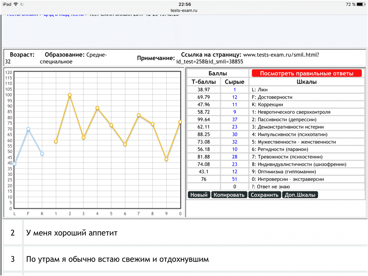 На основании этого графика психолог строит гипотезы состояния клиента и прикидывает необходимые методы и программу работы с ним.