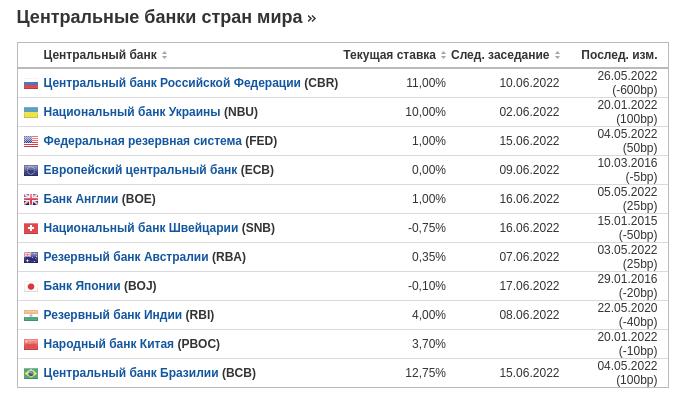 Таблица в тизере достаточно наглядная и еще раз отметим, что речь идет про плановое заседание. Предыдущее решение указано в правой колонке... только если с НБУ все понятно, то в графе напротив ЦБ РФ красуется аж минус 600 бп, то есть -6%. Российский ЦБ с последнего заседания снижал ставку дважды: планово и дополнительно внепланово, оба раза по -3%.