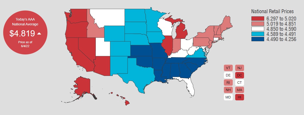 20 января 2021 года средняя цена за галлон бензина по всей стране составляла примерно 2,39 доллара. По состоянию на субботу цена на галлон бензина взлетела до 4,81 доллара, что на пять центов больше, чем в пятницу, согласно AAA.
