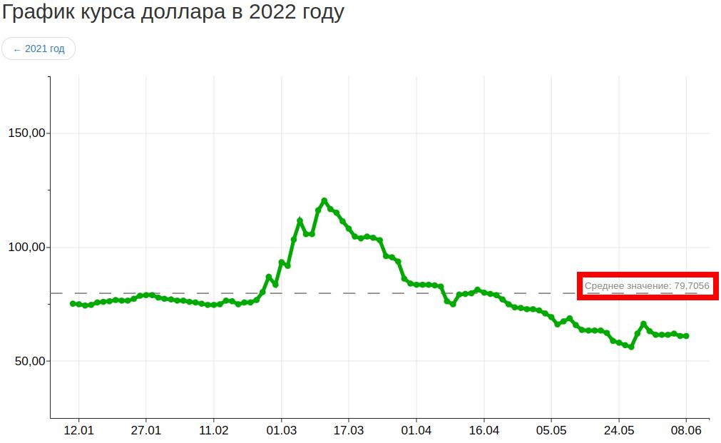 Прежде всего, старый скриншот с показателем неполного среднегодового курса доллара. Ровно пол месяца назад 24 мая этот показатель составлял 81,96