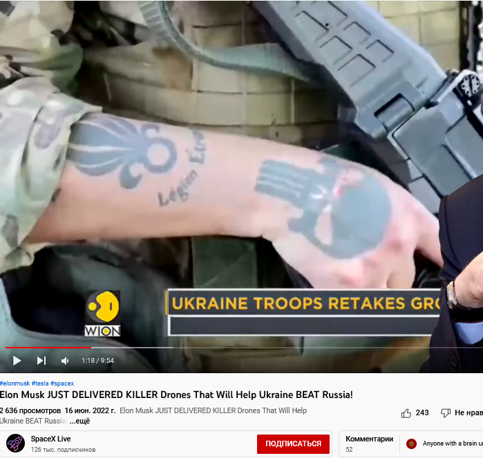 Речь идёт о фактической поддержке существом с местным именованием "Elon Reeve Musk" местной войны на уничтожение русских. Конкретно в недавнем ролике ютуб канала (зарегистрирован в 2009 в США) были показаны кадры представителей ЧВК США, - формально партнёров-конкурентов Принса, а по факту United States Navy SEALs и прочих к которым не так давно относился и снайпер-киллер Chris Kyle, т.е.фактически он ввязался в туземную 3 МВ врамках мер по уничтожению населения Земли. В этой связи можно рассматривать передаваемые технологии, управленческие действия, как технологии геноцида одной из коренной рас Земли с определённой реакцией.Речь идёт оп применении его сети как понял для получения точных координат целей, т.е. техники и людей РФ. Таким образом ВСЯ техника США и Маска в частности вне Земли являются законными целями. В случае действий против лиц космической программы РФ ключевых и аналогичные лица на Западе. Была смерть ещё спортсмена Бабакина - лидера по АМС, Из недавних сравнительно смерть "от ковида" руководителя пилотируемой программы РФ, тогда как рядом стоявшие многие даже не заболели.