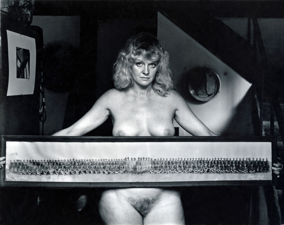 Эта композиция является попыткой объединить фотографический портрет и широкоформатную фотографию в единое стилистическое произведение. Само фото демонстрирует обнаженную, светловолосую, когда-то очень популярную секс-бомбу, которая держит в горизонтальном формате одну из тех старомодных, групповых фотографий, с изображением целого армейского батальона в полном составе. Вся эта инсталляция является как бы намеком, либо на ее богатое сексуальное прошлое или на излишнюю потасканность и неразборчивость в сексуальных связях, этой когда-то красивой женщины. Фото с выставки в Аспен, Колорадо 1972 год.