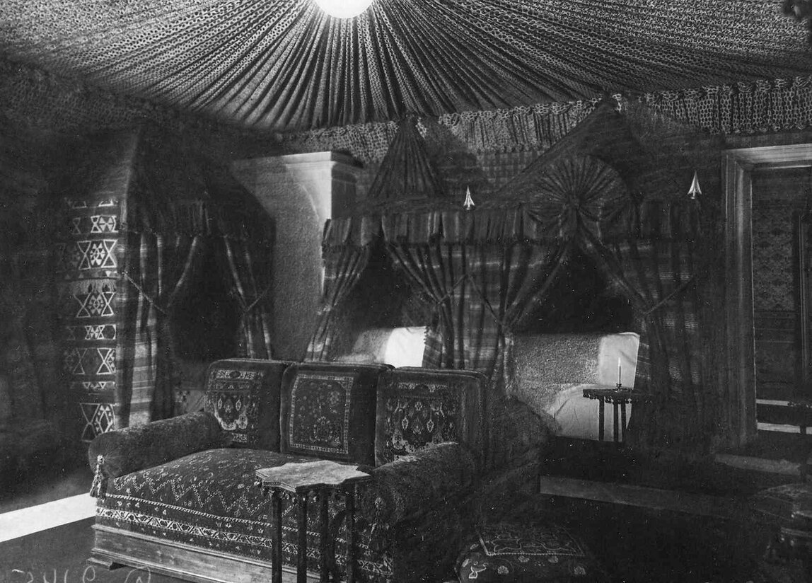 Внутри были оборудованы не только сами банные помещения, но и, как сейчас бы сказали, комнаты релаксации, отделанные в псевдо-китайском стиле. Внутренний вид кабин для раздевания.