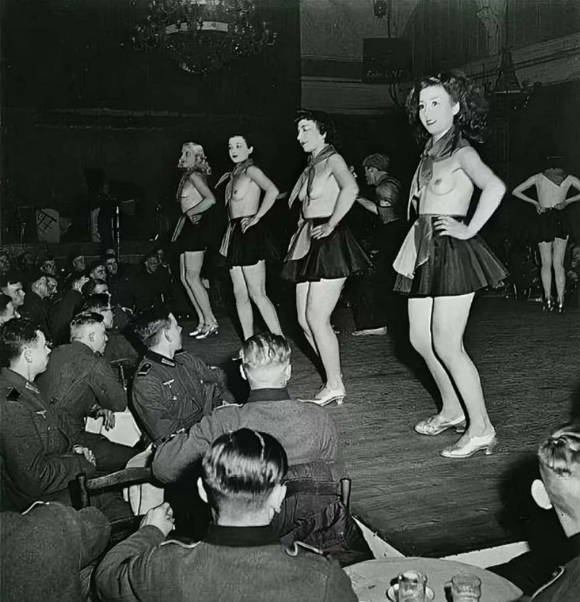 Стриптиз для солдат Вермахта в одном из парижских ночных клубов. Вот так отдыхали германские оккупанты. 6 апреля 1941 года.