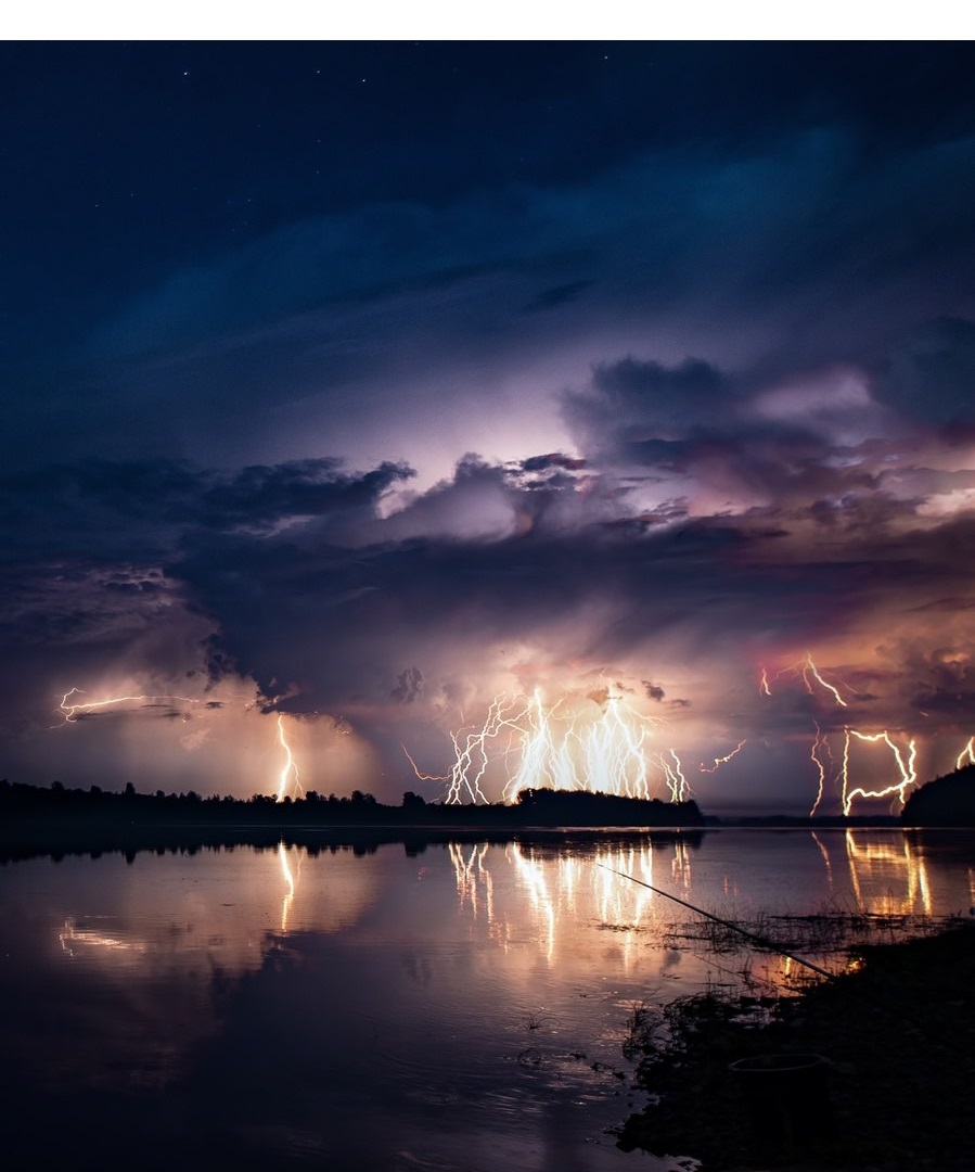 Композитная фотография ударов молний во время ночной грозы в Кировской области, 11 июля 2022 года.