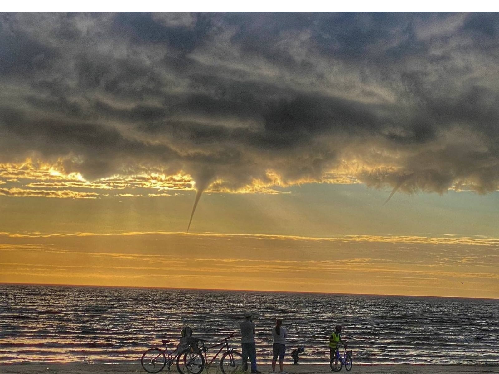 Несколько водяных смерчей образовалось вчера в Финском заливе рядом с городом Сосновый Бор, Ленинградская область.