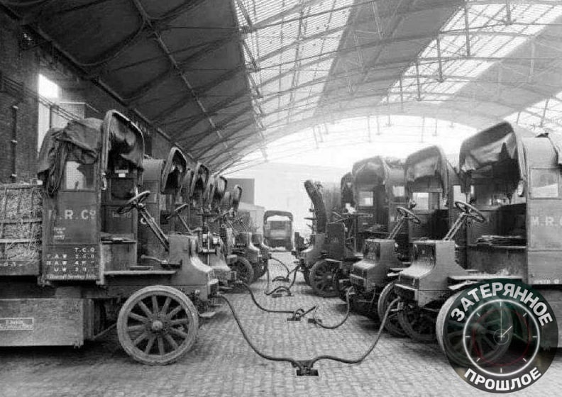 Зарядка электромобилей, Лондон, 1917 год. Никола Тесла еще жив.