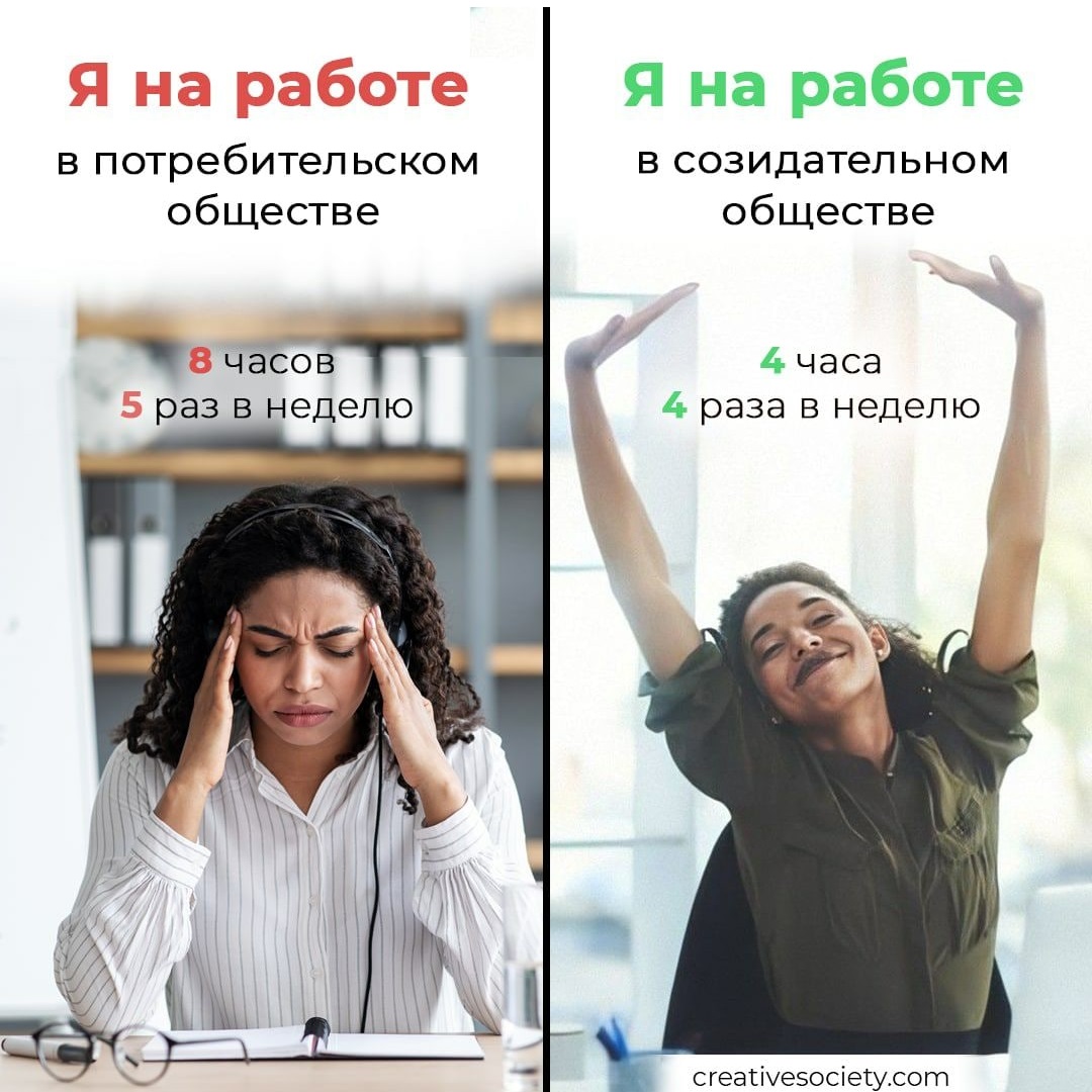 Все что мы имеем это труд других людей, на который мы меняем свой и вот если вам надо будет выполнить какую-то работу, да хоть отремонтировать что-то, построить, в общем заниматься любым созидательным трудом, вы поймете, что сократив работу в 2,5 раза по времени вы придете к тому, что ваш достаток упадет во столько же раз... Ну или вам надо будет найти идиота, который согласиться отработать ваши недоработанные 24 часа... В условиях снижения требовательности к себе человек ленивый будет стремиться сокращать время уделяемое на работу все сильнее и сильнее и мы скатимся в каменный век. Собственно "гетто-нигеры" (термин одного уважаемого здесь автора) в США яркий пример такой деградации.