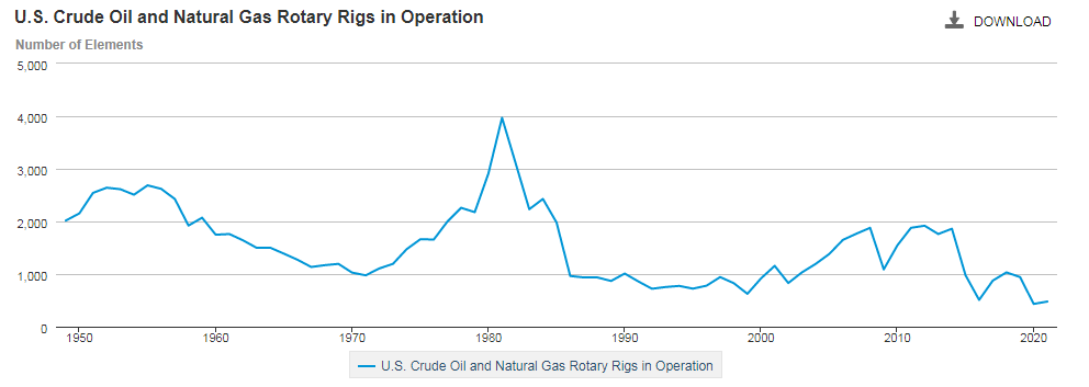 У них количество "буровых вышек" из статистики такого рода вообще хоть как-то коррелирует с объемами добычи?