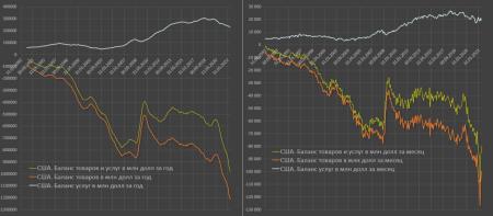 Отрицательное сальдо товаров и услуг также достигло антирекорда – 980 млрд долл по сравнению с дефицитом в 770 млрд год назад.