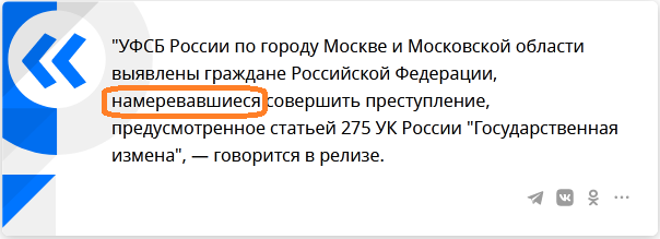 Содержание у них по существу одинаковое, поскольку М24 ссылается на РИА, фактически копируя заметку РИА. Это уже в самой заметке сперва приводится обвинение в намерении совершения преступления, а затем приводятся заявления "силовиков" о том, что некие жители "перевели средства". Возможно, тут получилось так, что эти граждане попытались перевести средства, но банк заблокировал эти операции и сообщил о фактах в ФСБ, поэтому фактически тут было лишь намерение совершить перевод. Отсюда расхождение, поскольку ФСБ говорит о фактах совершения противозаконных действий по переводу средств гражданами, но обвинение уже учитывает то, что фактически совершение преступления было предотвращено банком (иначе банк стал бы соучастником) и средства не были переведены, поэтому в обвинении уже фигурирует лишь "намерение".