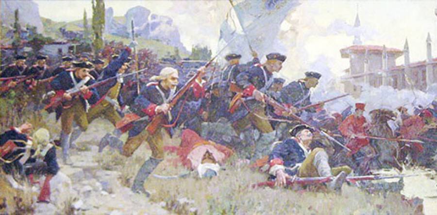 28 августа 1739 года в битве при Ставучанах генерал-фельдмаршал Христофор Миних опрокинул (80-и тысячное) турецкое войско, потеряв всего тринадцать русских воинов