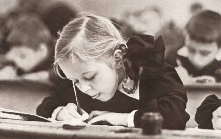 Несколько месяцев первого класса в 1964 году мы и понятия не имели, что такое – писать чернилами. Только карандаши, тетради в косую частую, потом редкую линейку. Которые подписывали за нас учителя.