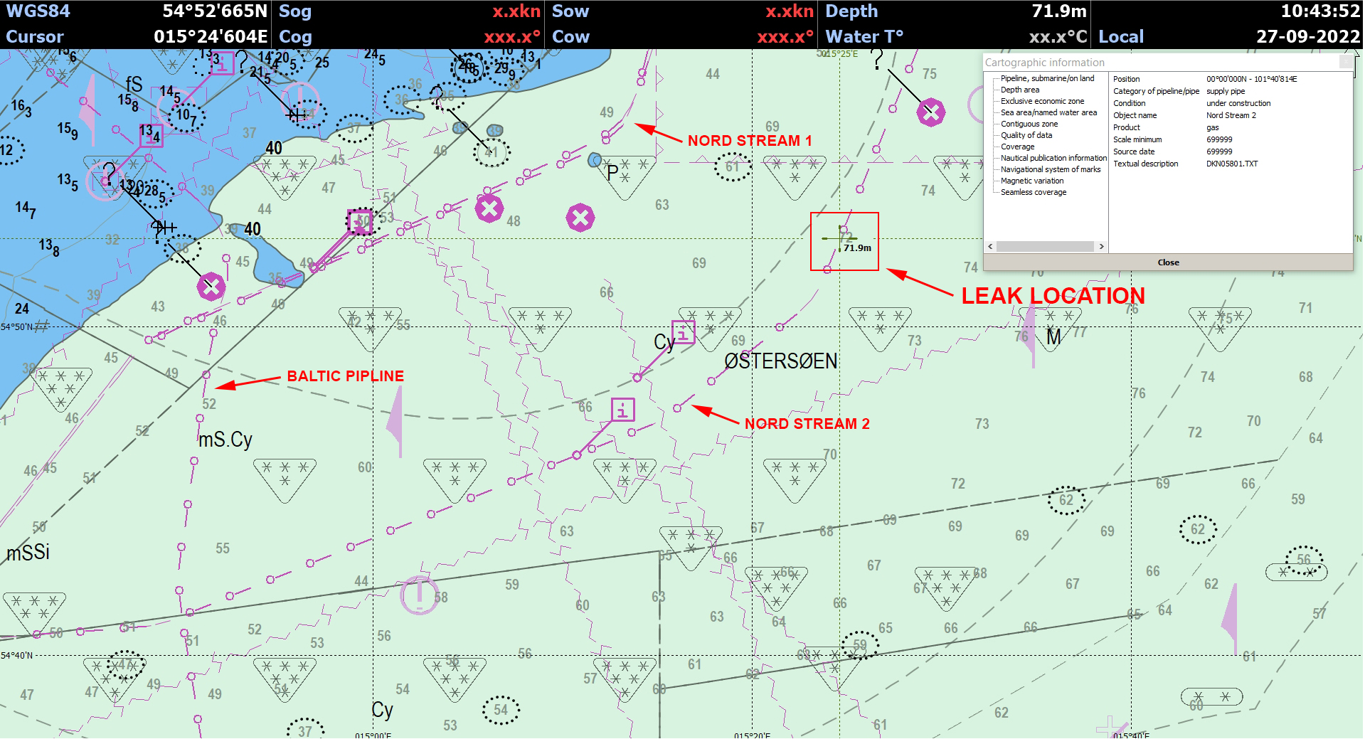 Да, дела... автор статьи даже карты приложил с местом утечки. Там вся топология есть , что рядом и как. Пустырь. Нордстрим один-одинешенька. Не промахнешься и ничего лишнего.