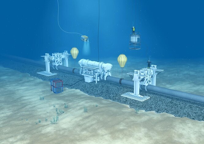Либо тот самый военный противоминный девайс на проводе, то есть нужно судно-носитель типа тральщика, либо относительно простенький управляемый глубоководный аппарат (непривычно называть машину на толстенном кабеле/тросе дроном), поставивший увесистые заряды с таймером или опять же с кабелем наверх. У последних носители попроще, разных работ под водой в наши дни много ведется.