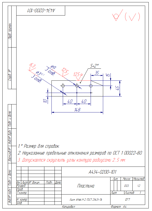 Таким образом, чертеж нашей Пластины должен выглядеть так (технические требования дополнены пунктом 3, красный)