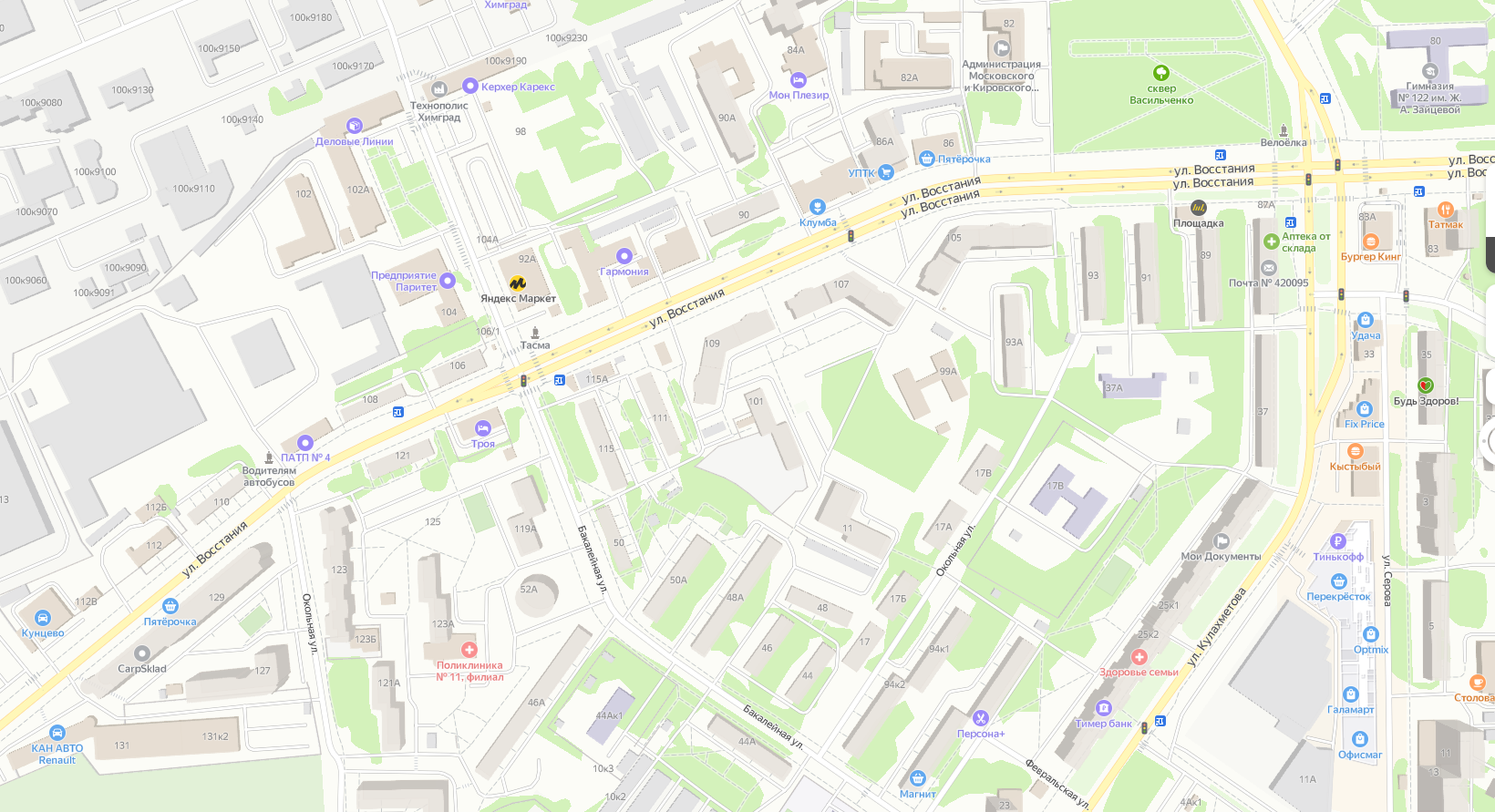 В избирательный участок входят: улицы Восстания, дд. 101, 107, 109, 111, 115, 119а, 121, 121а, 123, 123а, 127, 129, Бакалейная, д. 52а.