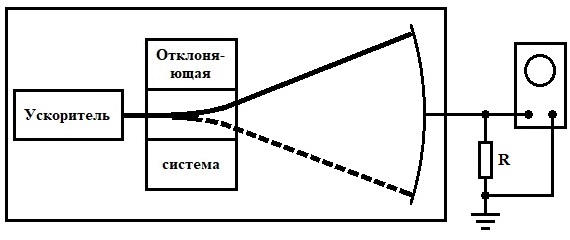 Для проведения эксперимента потребуется следующее оборудование: вакуумная труба, слаботочный электростатический ускоритель, отклоняющая система, изогнутая металлическая пластина, резистор R и осциллограф.
