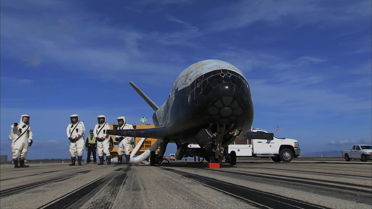 Веселая заправка Boeing X-37 в скафандрах химзащиты. Или что они там делают: