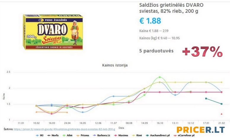 Это видимо сделано из говна и палок. Вот для перспективы в начале 2018 года сливочное "Дваро" стоило 1.5 евро, сегодня 3.29 евро.