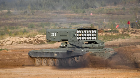 Главный инженер АО «Омсктрансмаш» Денис Петров в эфире программы «Военная приёмка» на телеканале «Звезда» заявил, что в России ведутся работы по увеличению дальности и кучности стрельбы тяжёлой огнемётной системы (ТОС-1А) «Солнцепёк».