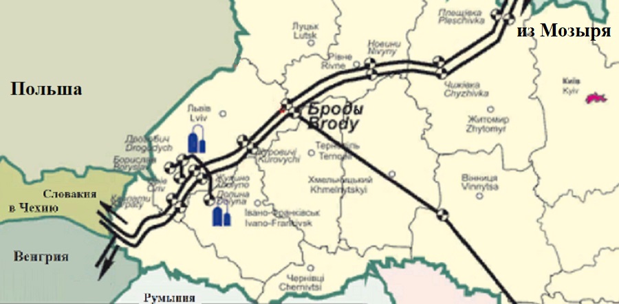 Нефтепровод "Дружба" берет свое начало в Самарской области, проходит через Брянск и далее разветвляется на два участка: северный (по территории Белоруссии, Польши, Германии) и южный (по территории Украины, Чехии, Словакии, Венгрии).