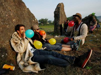 Посетители музыкального фестиваля в Гластонбери вдыхают закись азота в каменном круге (Reuters/Olivia Harris)