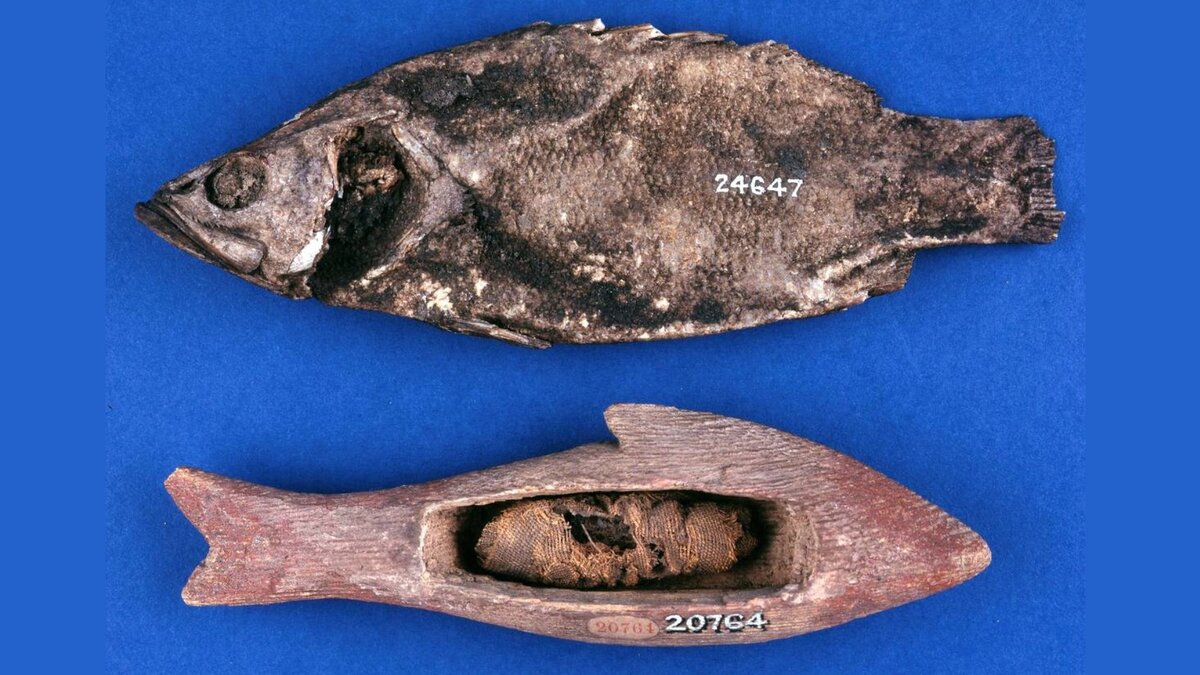 Экземпляр длиной в 18 см выловили в окрестностях Луксора где-то две тысячи лет назад. Точнее сказать сложно: Британский музей купил ползуна у торговца древностями и неясно, в какой гробнице добыли эту рыбу.
