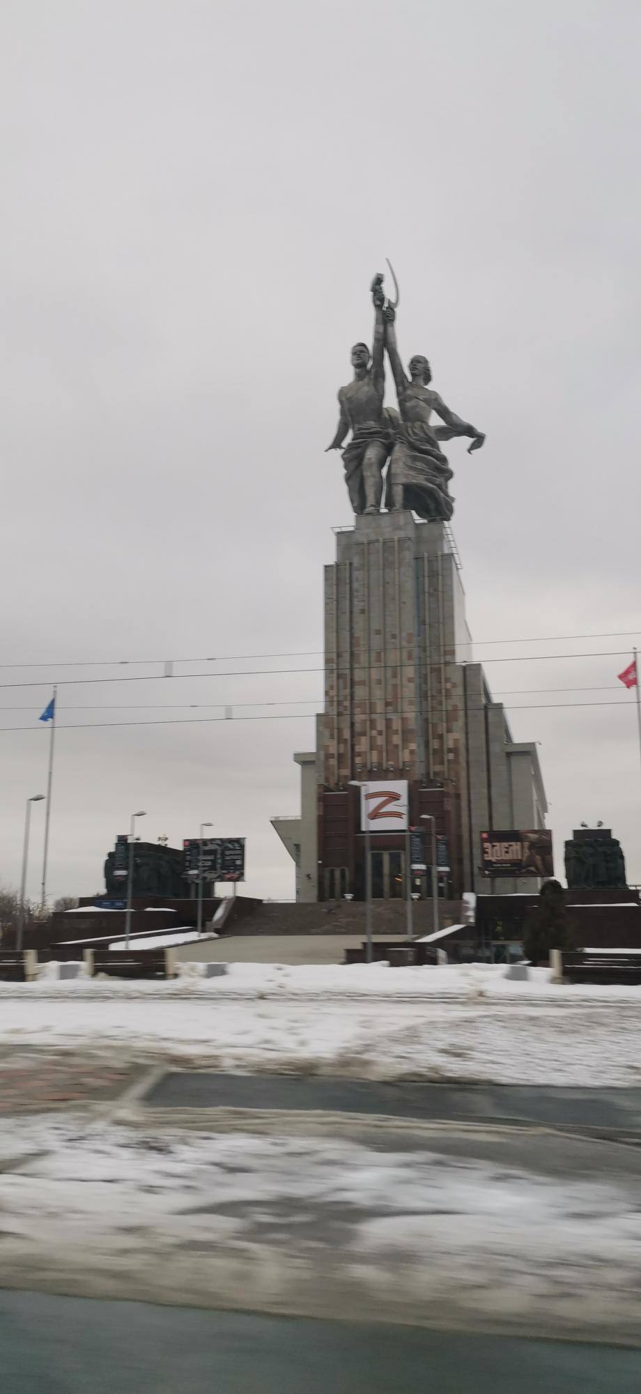 С женой, согласно Мухиной изобразили Рабочего и Колхозницу с малой кувалдой и лобзиком для тонких работ. Пропели первый куплет Гимна Союза.