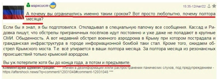 "Почему вы ткнули меня в моё .... так рано, всего лишь через полтора месяца? Давайте подождём когда о моём провокаторском набросе паники о величии западных вооружений и слабости ПВО РФ все забудут потерпите хотя бы до конца года, а потом и предъявите.