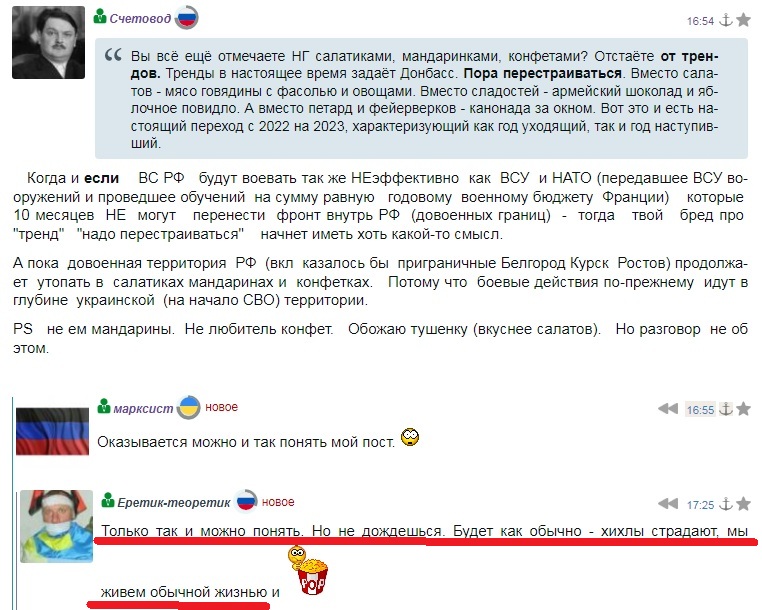 Вместо запоздалого признания "неправоты" (хотя я уверен что там был не прогноз, а провокация) .... новый "подарочек" аудитории. Прямо в праздник, 1-го января уже нового, 2023 года читаем в новой статье Марксиста: