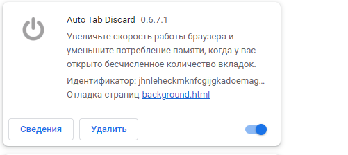 Чтобы увидеть, сколько раз вкладки обновились и когда, полезно посмотреть в Хроме на страницу chrome://discards/ . Она подтвердит, что установленное расширение работает, и кеш ваших старых вкладок не обновился, если вы установили расширение ("Disable automatic tab discarding").