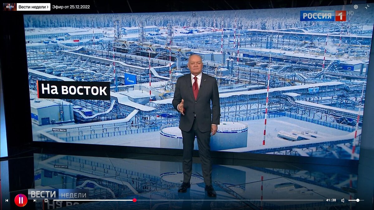 Запуск в работу (время на 40:50) Ковыктинского месторождения с запасами 1,8 трлн кубометров, состоявшийся 21 декабря, на котором планируется добывать 27 млрд кубометров газа ежегодно, позволит «Газпрому» к 2025 году выйти на плановые цифры. Этого объёма газа хватит почти на 67 лет.