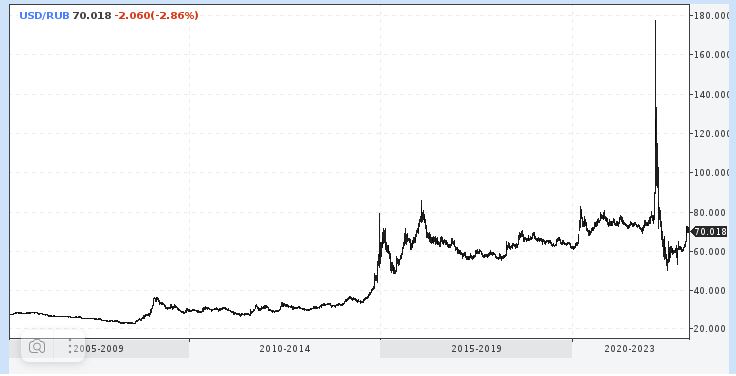 Вот только диапазон колебания рубля за последние 10 лет: от 30 до 180 ₽/$.