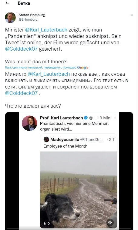 Это видео привлекло внимание федерального министра здравоохранения Германии Карла Лаутербаха, который ранее в 2022 году пытался провести закон о введении обязательной вакцинации от COVID.