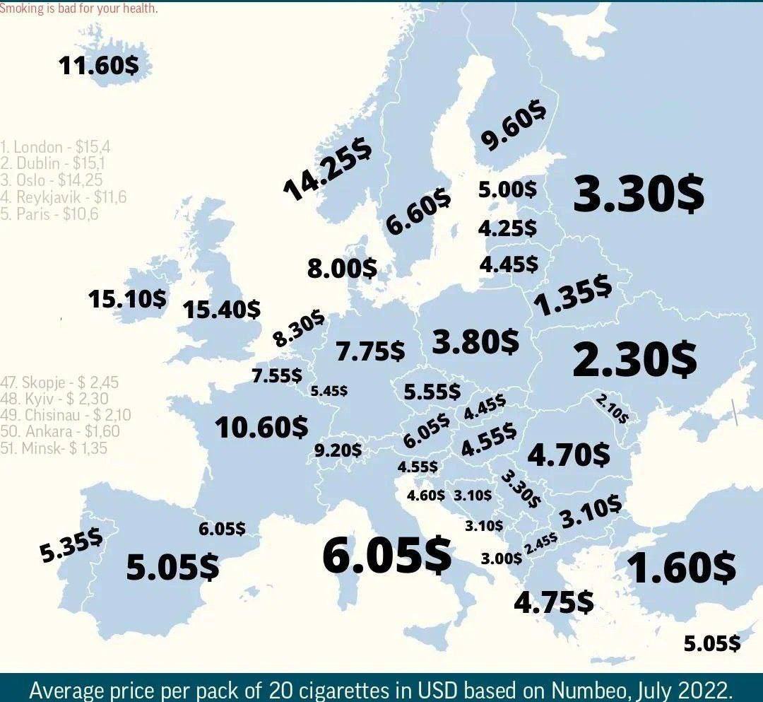 табак изначально везде дешевый, просто в европе драконовские акцизы на него.