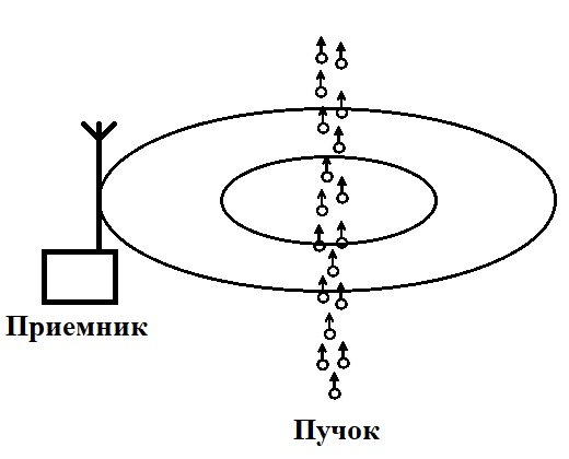 Рисунок 2. Схематичное изображение пучка, выстреливаемого пушкой