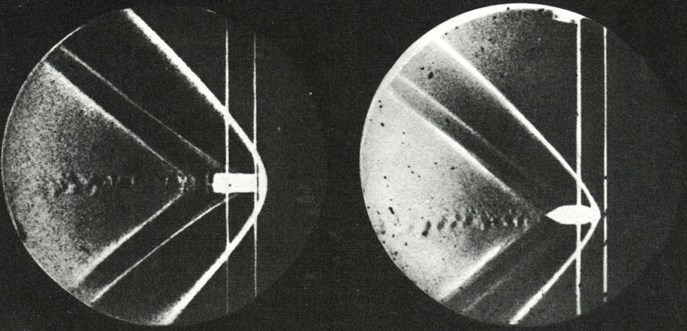 Возможность же существования ударной воздушной волны окончательно признана была только после того, как в 1888 году Эрнст Мах опубликовал результаты своих исследований с фотографиями волн, создаваемых в воздухе пулями, движущимися со сверхзвуковой скоростью (рисунок 1).