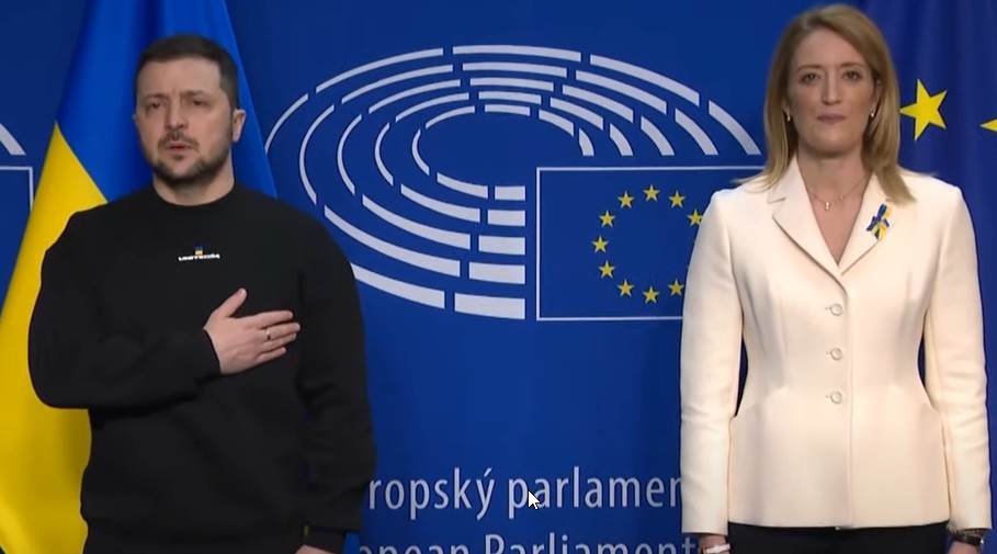 В Европарламенте даже исполнили знаменитый гимн: "Щеня вмэрла" Сам Зеленский даже картинно расплакался.
