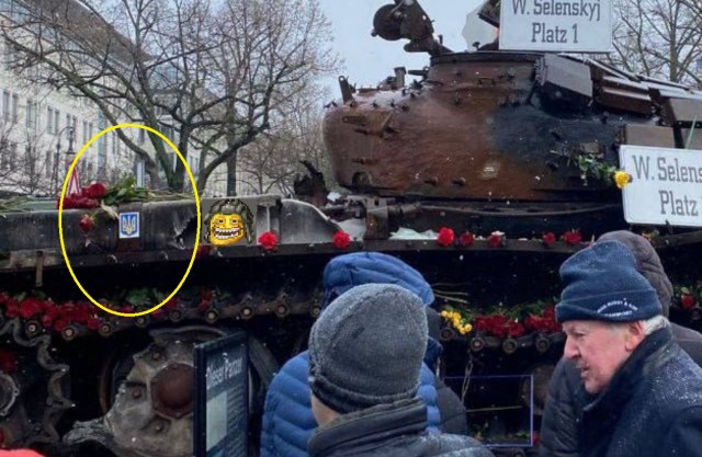Подбитый русский танк с разрешения немецких властей привезли в Берлин украинские активисты. Они разместили танк напротив посольства России в Германии, чтобы выставить напоказ свою "перемогу" и запугать русских. Так Украина решила отметить годовщину начала спецоперации. Но украинская провокация дала обратный эффект