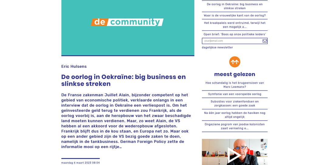 Французский предприниматель Жюйе Ален, который особенно компетентен в области экономической политики, не так давно заявил в интервью, что война на Украине - проигрышное предложение. Чтобы окупить вложенные в Украину деньги, Франция по окончании войны должна иметь возможность зарабатывать на восстановлении этой сильно пострадавшей страны. Но, по информации Алена, США уже заключили договор на восстановление. Так, Франция осталась в очереди, как и Европа. У США дела идут хорошо и в другой области - в танковом бизнесе.