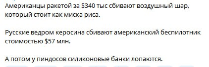 Нет. Следует восхищаьться уровнем американской техники! Ведь американский беспилотник не может просто рухнуть в море. А что же тогда? Он перешел в режим подводного плавания - подводного беспилотника и отправился исследовать морское дно. Скоро вернется. Ждите. А если его под водой какие-то морские чудовища сожрут, то это не к нам. А так да - у нас ничего подобного нет - так чтобы летал, летал, а потом сразу же под воду уходил..