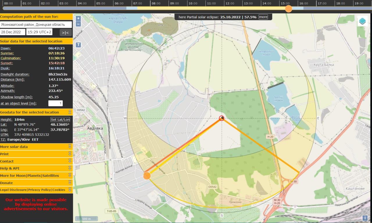 Направление полета беспилотника известно, время известно, дата известна. Существуют программы позволяющие выстроить освещенность. Мне такую программу искать не нужно она установлена.