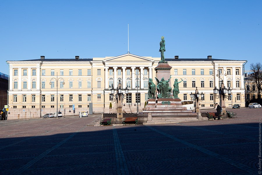 ЗЫ. Интересное замечание. Когда стал искать картинку-тизер "хельсинский университет", то нашел всего одну, где есть перспектива с памятником АII (Сенатская площадь), на остальных здание университета есть, но без памятника его основателю. Тем не менее, ранее этот памятник имел адрес "от благодарных жителей". Это вам рассказал бы любой экскурсовод.